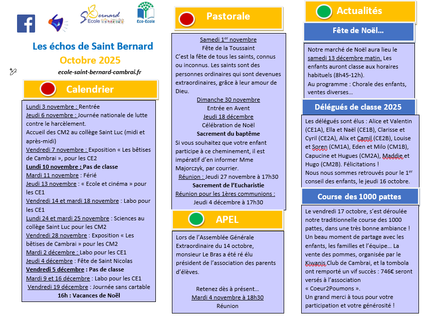 Octobre 2025: Parution des »Echos » de l’école Saint Bernard de Cambrai…Bonne lecture!