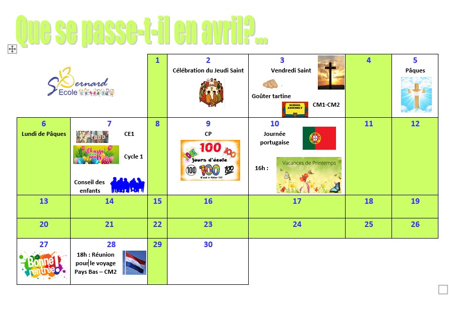 Que se passe-t-il à l'école Saint Bernard de Cambrai, en avril 2026? ...